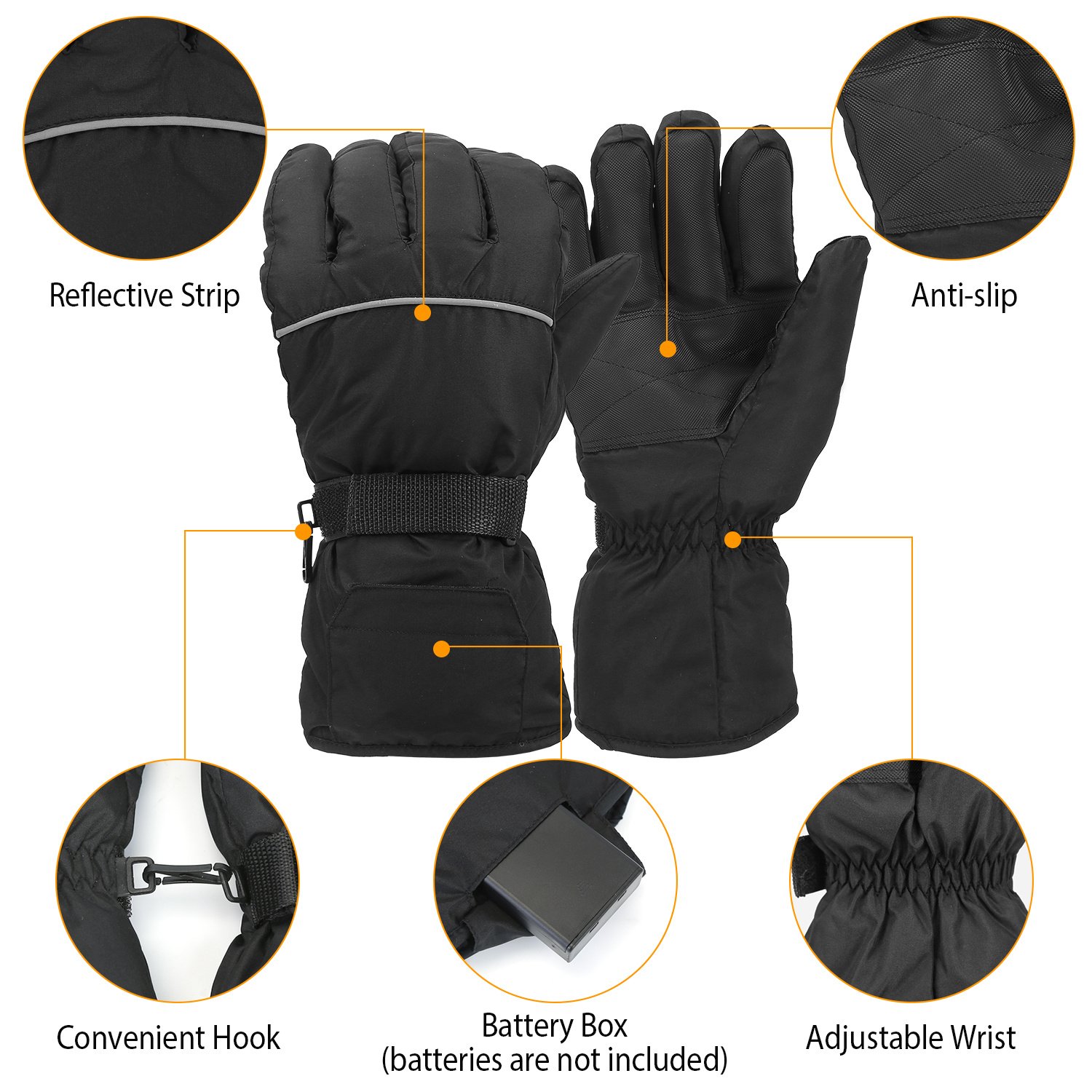 **Independent Battery Box*:Battery heated gloves equip with 2 independent battery boxes,which is powered by 6*AA batteries(not included). Independent battery box is very safe and convenient to use in daily life.