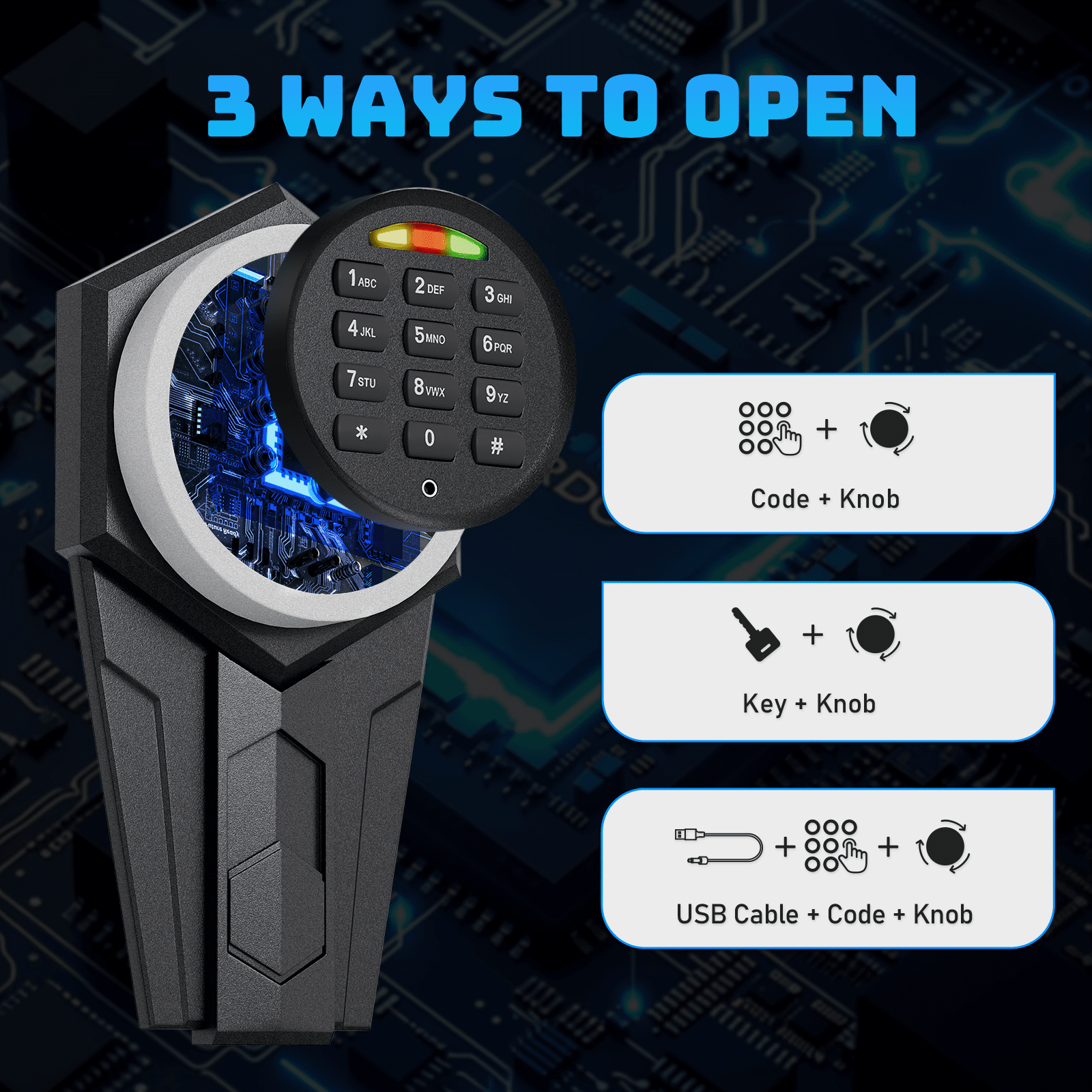 Convenient electronic access: Equipped with a backlit keyboard for password input and hidden keyholes for emergency access, ensuring convenience and security.
