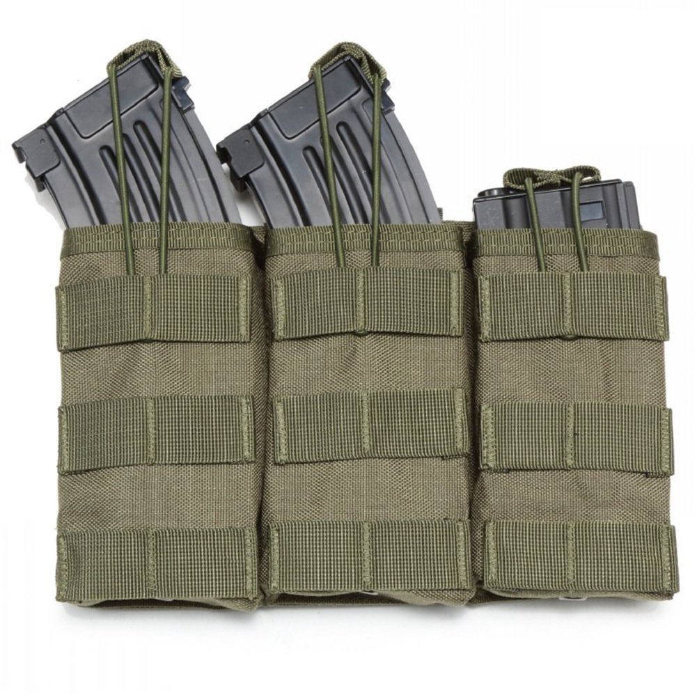 | Ideal For Anyone Using The Lightweight And Minimalist Mindset To Determine Your Loadout Lightweight and low profile airsoft mag pouch -- let you leave the pouch in when not storing mags without the extra bulk | TRIPLE OPEN-TOP MAG POUCH This mag holder will carry two mags, suitable for most of the small caliber rifle magazine, including but not limited to 30-round M4/M16 magazines, HK416 magazines Specifications Material: 1000D Nylon | RACHSA MAG POUCH Molle webbing on the front allows you to expand carrying capacity. Molle straps on the back can simply be attached to your tactical belt, military vests, backpack, radio pouch, rifle case, magazine holster,molle mag pouch etc. |