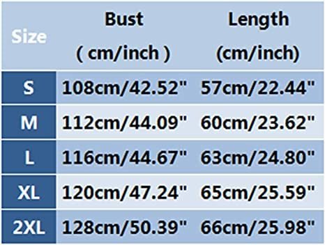 Style: CasualSize Notes:* Size:S-----Bust:108cm/42.52"-----Length:57cm/22.44"* Size:M-----Bust:112cm/44.09"-----Length:60cm/23.62"* Size:L-----Bust:116cm/44.67"-----Length:63cm/24.80"* Size:XL-----Bust:120cm/47.24"-----Length:65cm/25.59"* Size:2XL-----Bust:128cm/50.39"-----Length:66cm/25.98"Delivery:We will ship out your orders within 7 business day by E-packet or other commercial post service. We have Standard Shipping service and Expedited shipping to choose.About Standard Shipping service, the packages will usually take about 7-15 business days to be delivered to you .About Expedited shipping, the packages will usually take about 4-6 business days to be delivered to you .Note1. Please allow 1-2cm differs due to manual measurement.