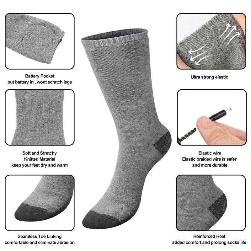 1.Adjustable Heated Socks: These electric heated socks are designed to keep your feet warm in cold weather. The nano-composite fiber heating technology quickly warms up, reaching temperatures of up to 50°C, providing you with maximum comfort.