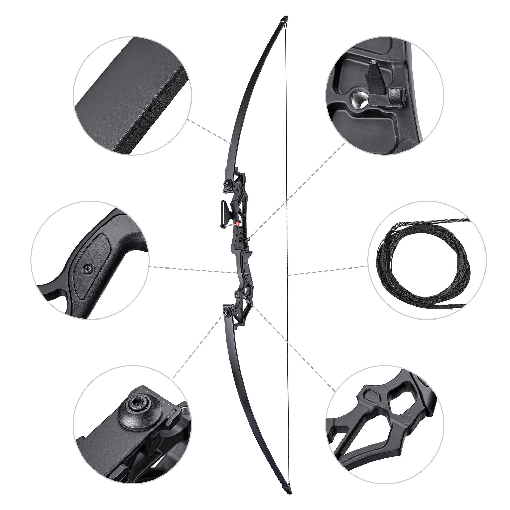 - Premium Materials for Durability - Aluminum magnesium alloy riser with high tensile and stability can withstand high stress flexing & loading for long-term arrow shooting; Bow strings made of high-quality BCY fiber; is sturdy and flexible; can keep bow in best shape